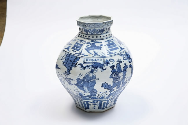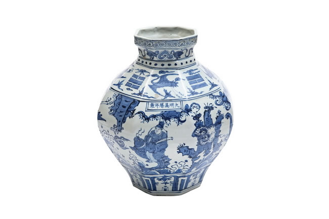 款识:大明万曆年製款 BLUE AND WHITE 'FIGURE STORY' OCTAGON JAR Wanli Period, Ming DynastyMark: Wanli Six-Character Sealmark