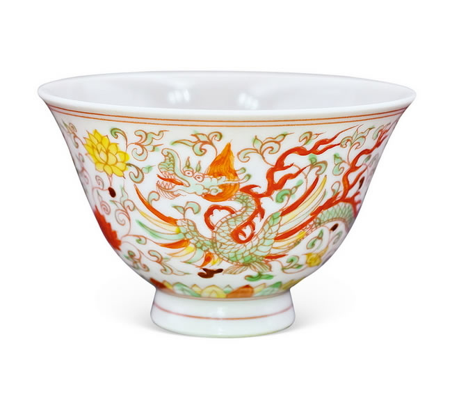 规格: H. 5.5 cm MD. 8.3 cm BD. 3.3 cmDOUCAI CUP WITH TWO DRAGONS PATTERN Chenghua Period, Ming Dynasty