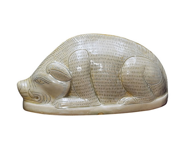规格: H. 8.8 cm W. 17 cmYUE KILN SECRET CELADON WILD POAR Five Dynasties
