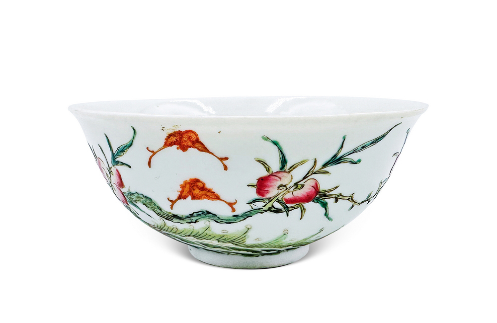 FAMILLE ROSE 'BATS AND PEACH' BOWL Qing Dynasty