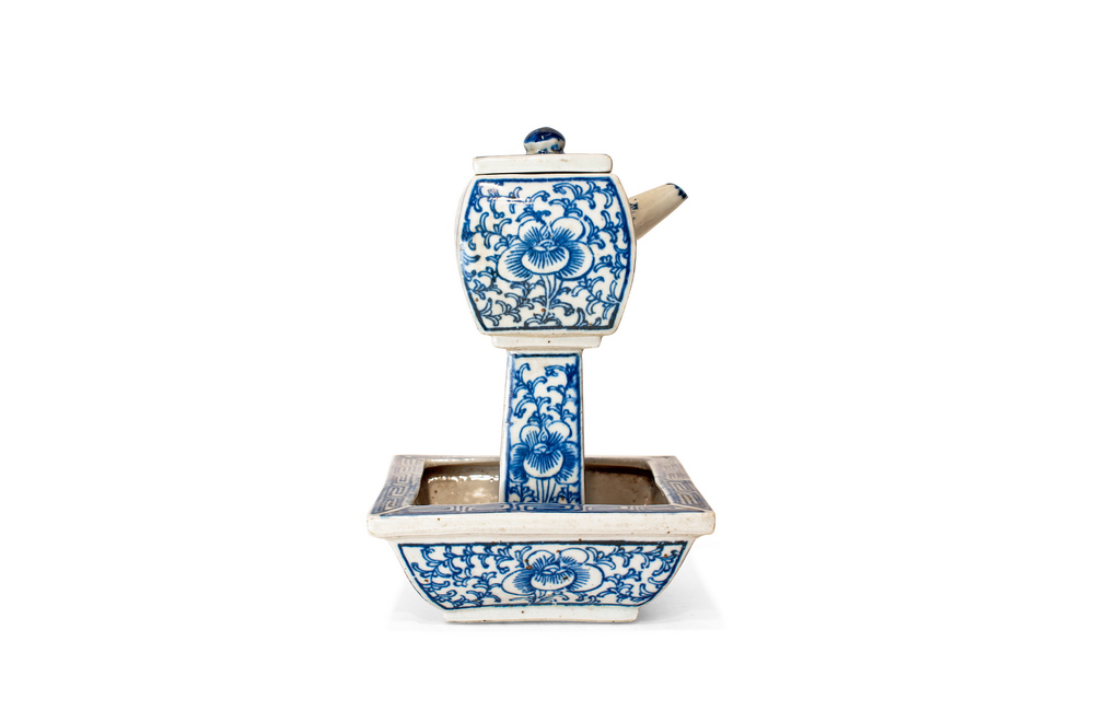 202501_472 青花方池高足鼓壶油灯 明崇祯