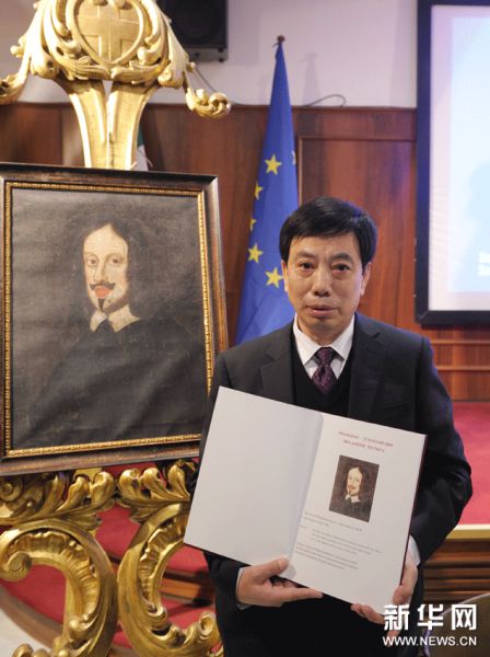 中国收藏人士熊仕玉在意大利罗马展示其收藏的莎士比亚肖像画。