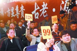 19日下午,2010中国宜宾酒圣节五粮液藏品酒拍卖会上。
