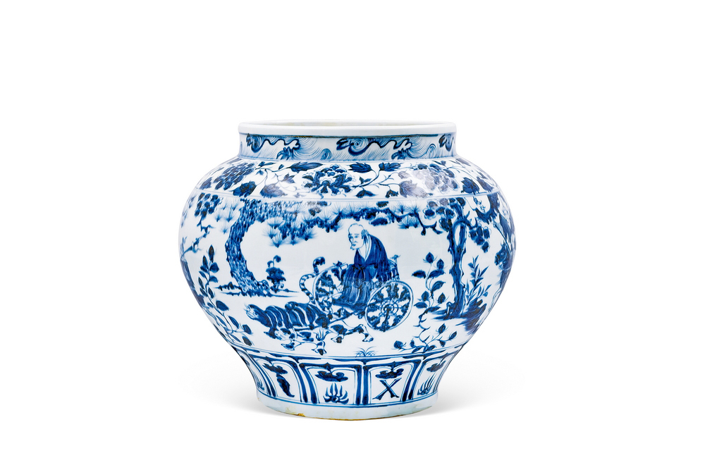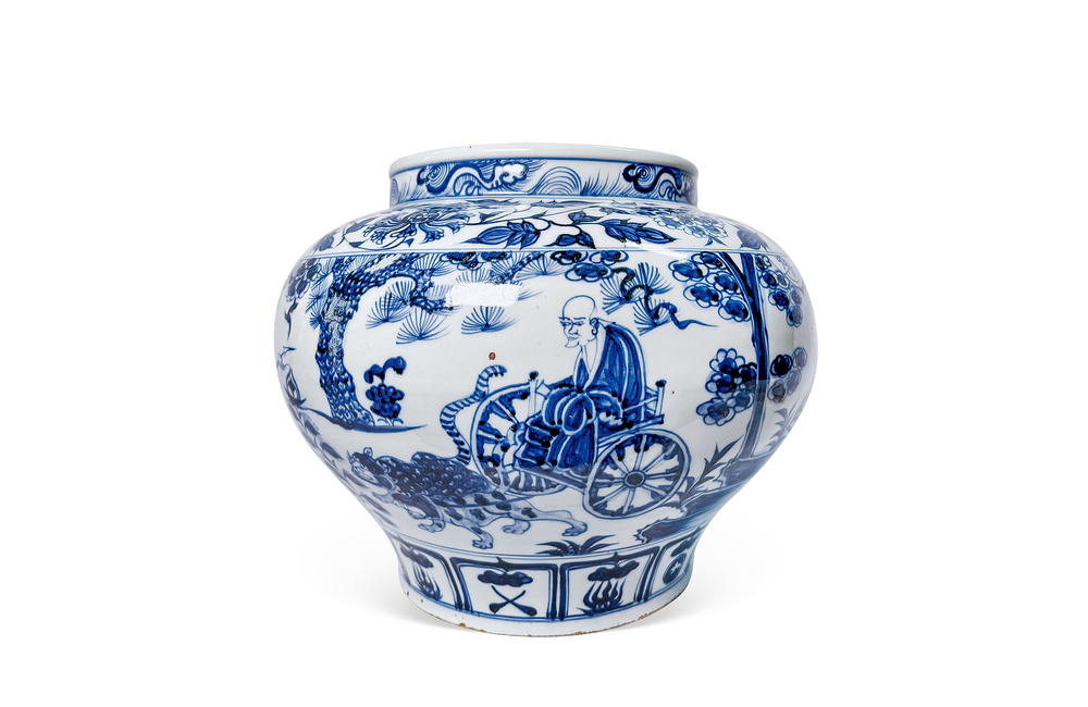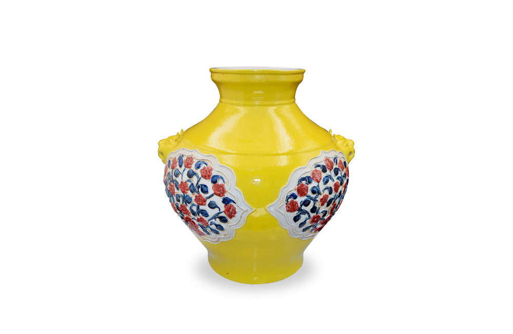 202501_350 黄釉开窗青花釉里红兽耳大罐 元代