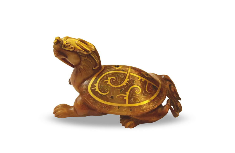 202501_504 和田玉包金错金镶嵌宝石龟(永寿)