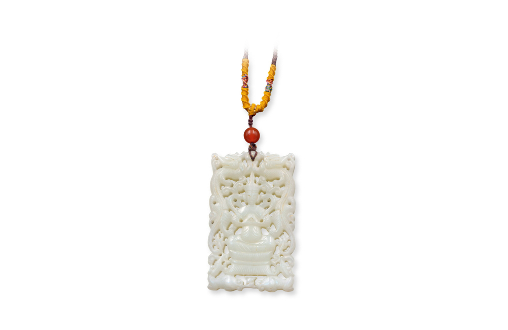 202501_499 和田玉缕空雕双龙坐佛玉佩 明代