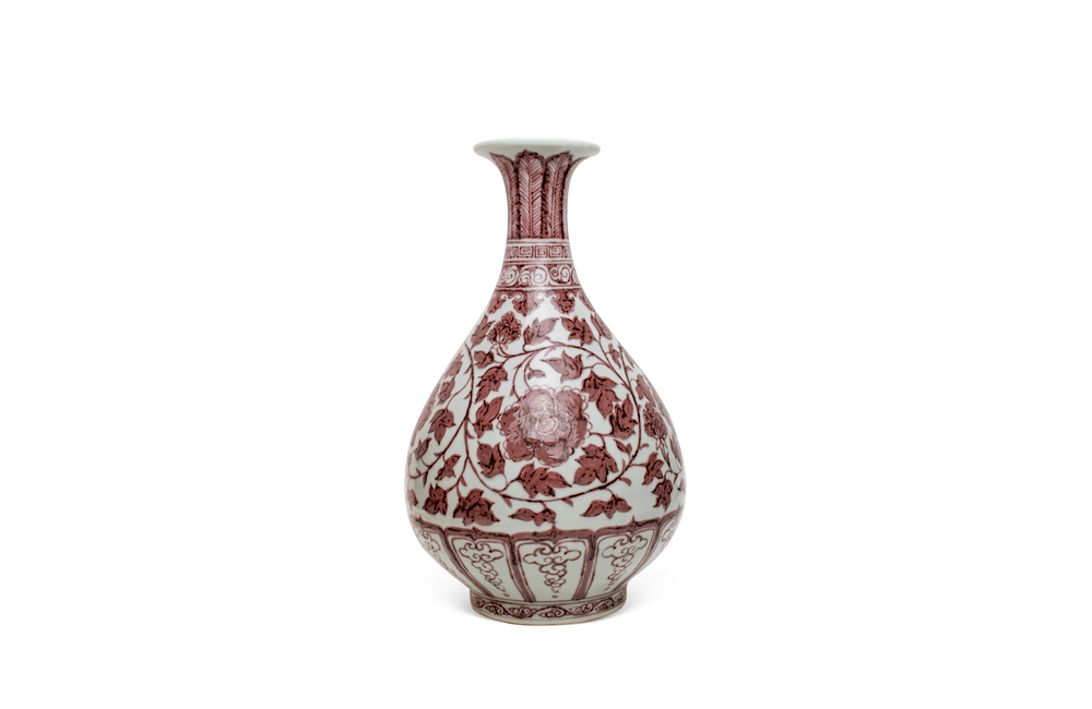 202501_253 釉里红缠枝牡丹纹玉壶春瓶 明洪武