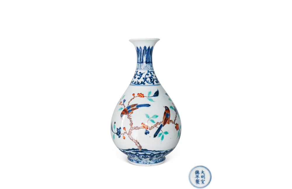 202501_254 青花五彩花鸟纹玉壶春瓶 明宣德