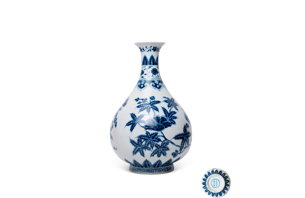 202501_255 青花秋葵蕉叶纹玉壶春瓶 明宣德