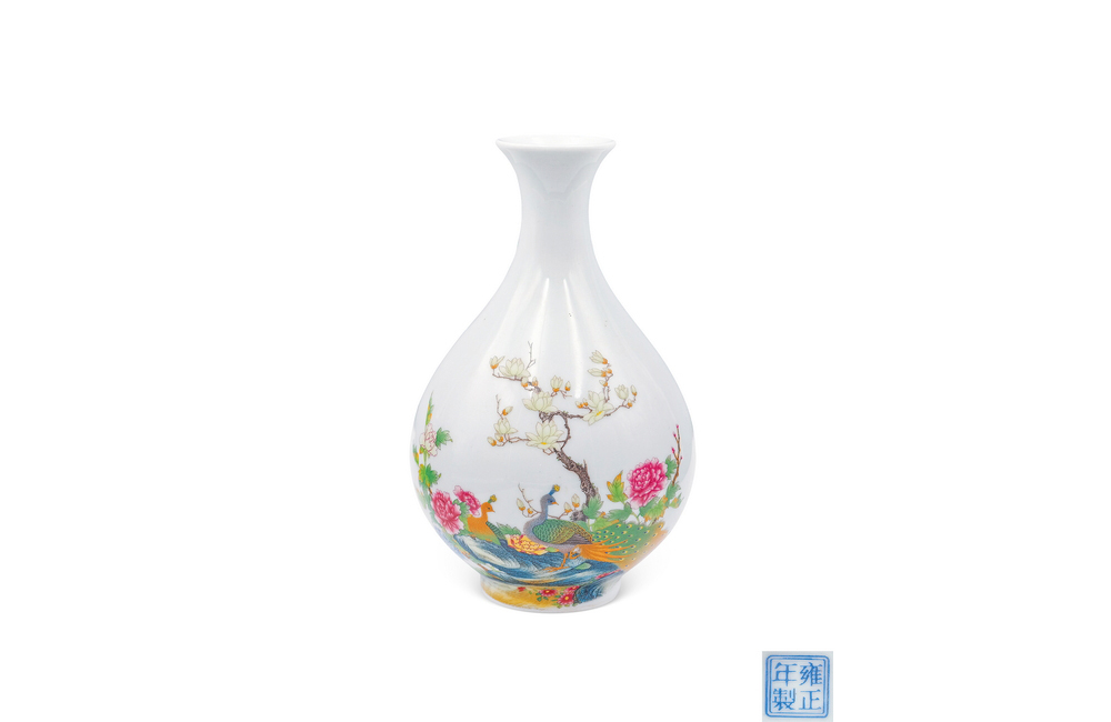 202501_251 珐琅彩孔雀牡丹纹玉壶春瓶 清雍正
