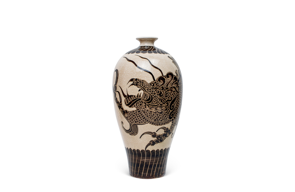 202501_246 磁州窑白地黑剔划龙纹梅瓶 北宋