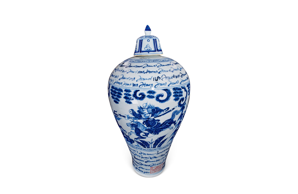 202501_234 青花波斯纹人物故事梅瓶(带盖) 元代