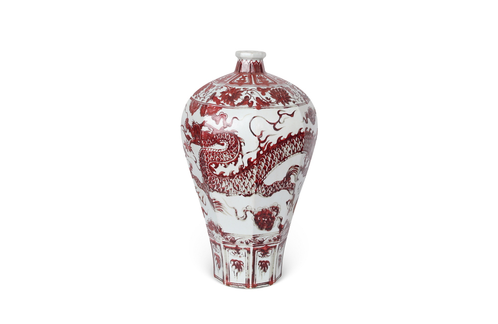 202501_236 青花轴里红龙纹八棱梅瓶 元代