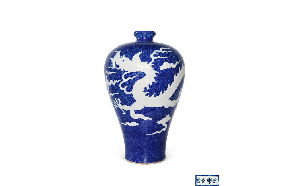 202501_230 雪花蓝釉留白云龙纹梅瓶 明永乐