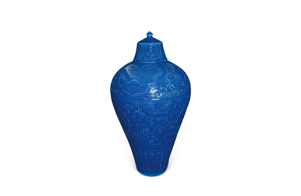 202501_231 孔雀蓝云龙纹梅瓶(带盖) 元代