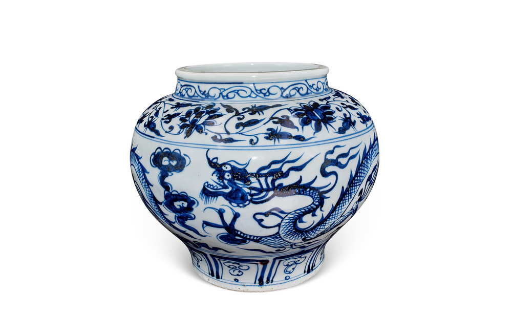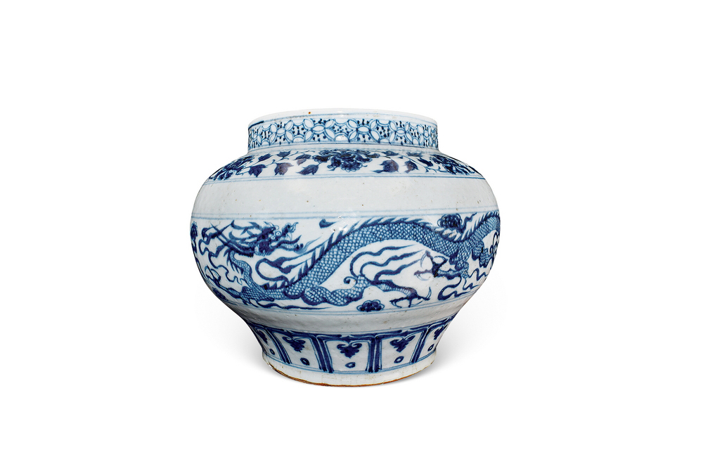 202501_208 青花缠枝花卉龙纹大罐 元代