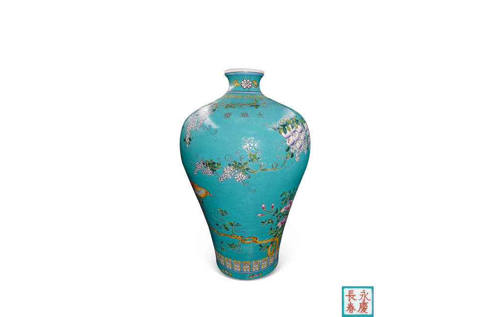 202501_211 大雅斋松石绿地彩葡萄牡丹梅瓶 清代