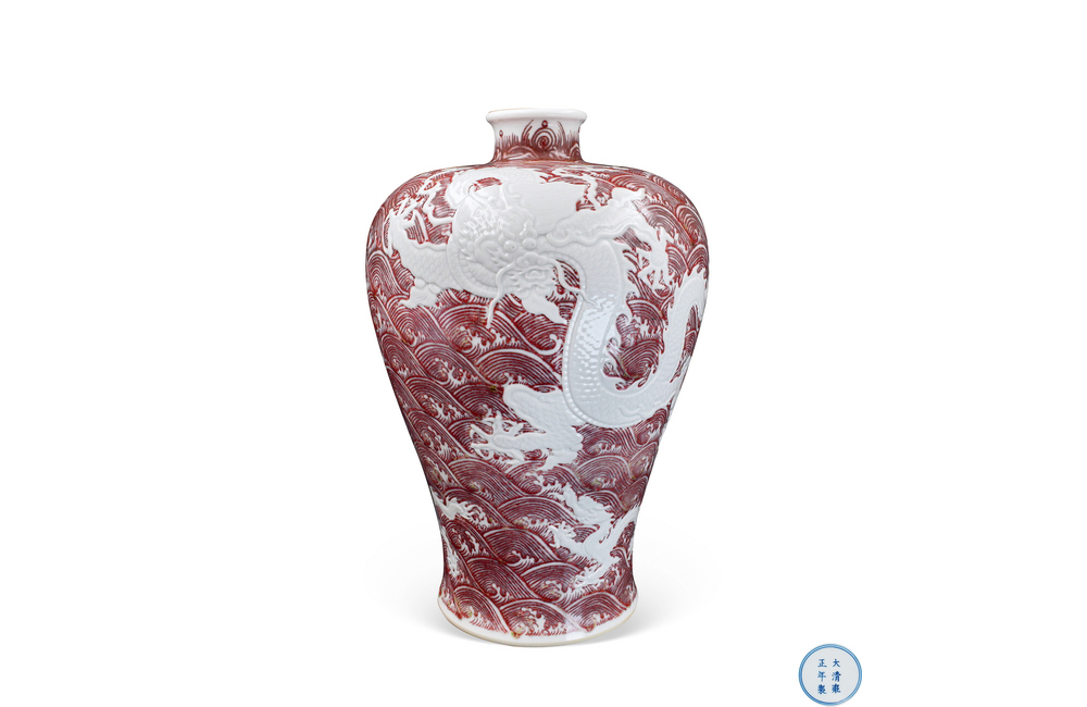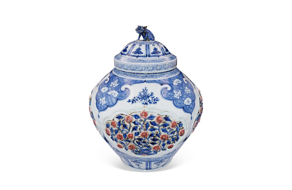 202501_198 青花釉里红开窗堆塑異兽盖罐 元代