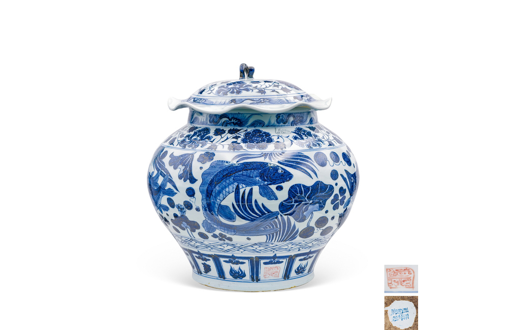 202501_199 青花鱼藻纹波斯纹大罐(带盖) 元代