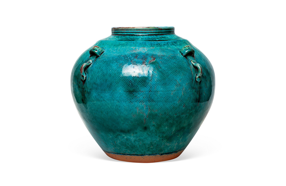 202501_200 绿釉编笆纹四系大罐 辽代 公元924年
