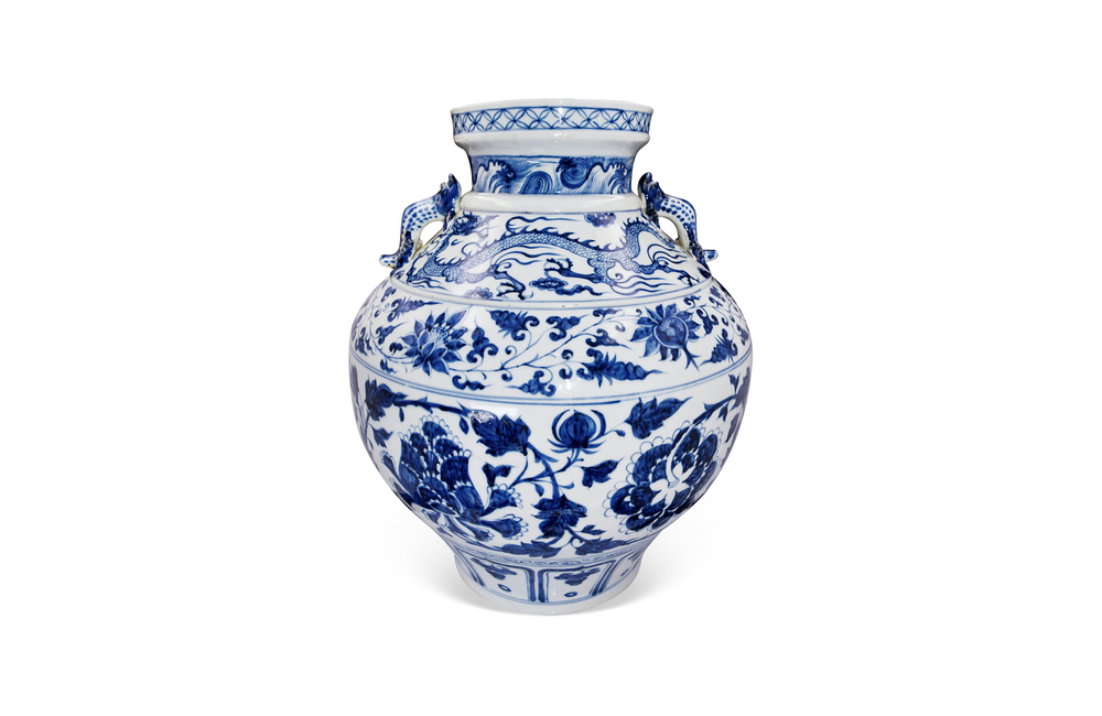 202501_194 青花双龙牡丹纹兽耳大罐 元代