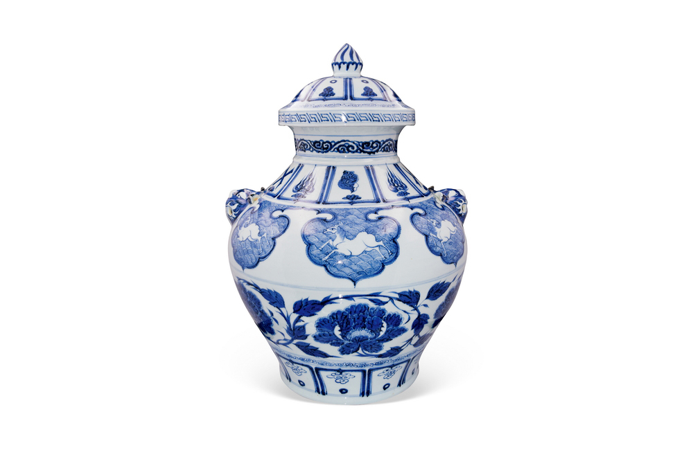 202501_191 青花牡丹纹兽耳盖罐 元代