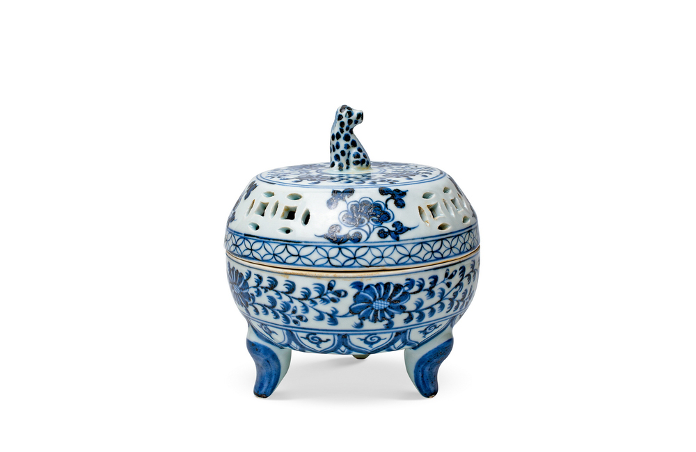 202501_482 青花缠枝花卉纹兽纽三足香薰 明洪武