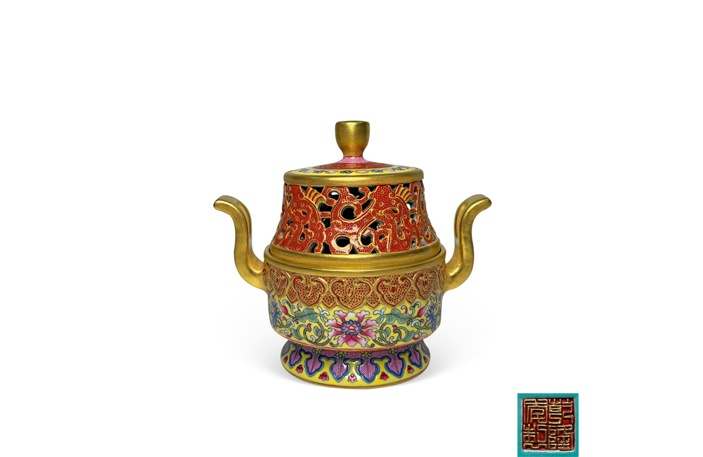 202501_475 黄釉珐琅彩镂空龙纹朝天耳带盖香薰 清乾隆