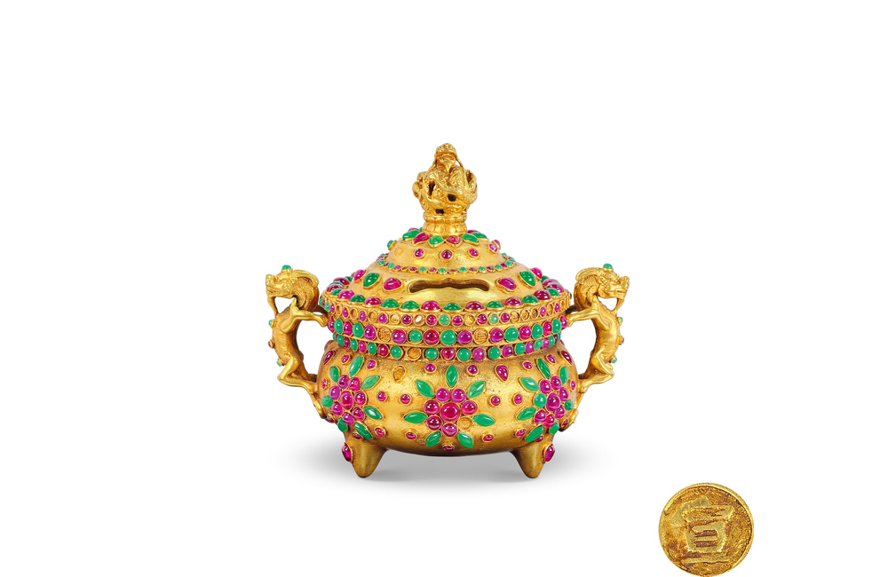 202501_476 铜鎏金嵌宝石冠耳炉 清代