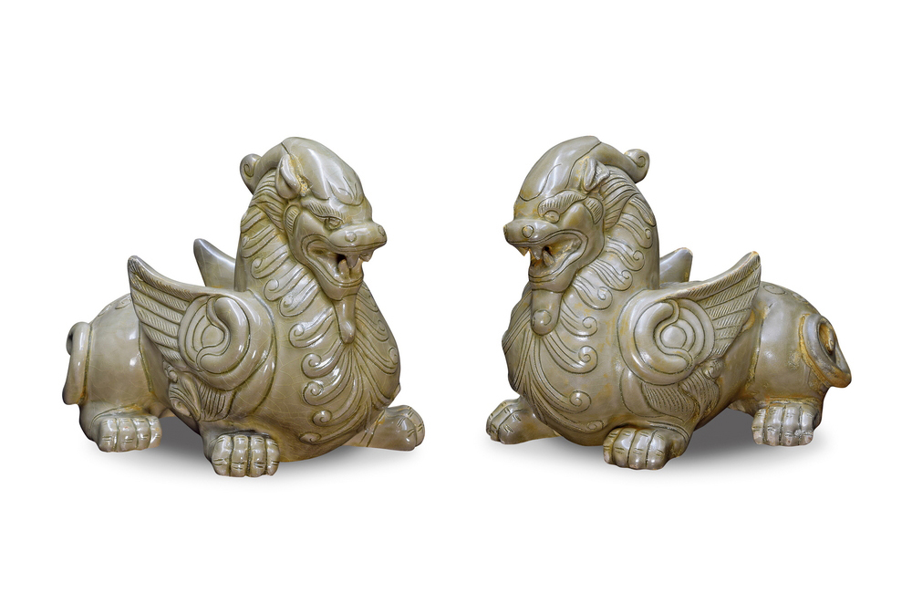 202501_324 越窑秘色瓷翼狮(一对) 五代