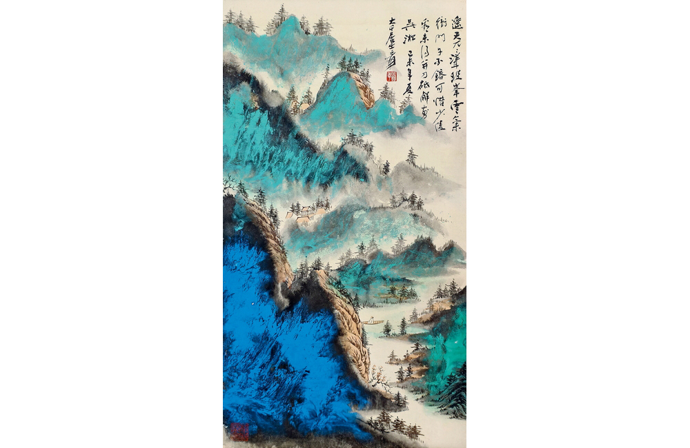 202501_030 泼彩山林泛舟图 现代 张大千