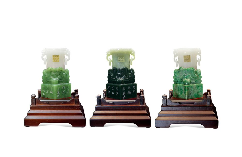 202501_540 双奥中国尊翡翠玉雕三枚摆件