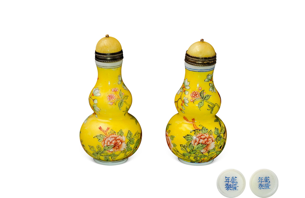 202501_541 黄地料胎牡丹花卉鼻烟壶 清乾隆