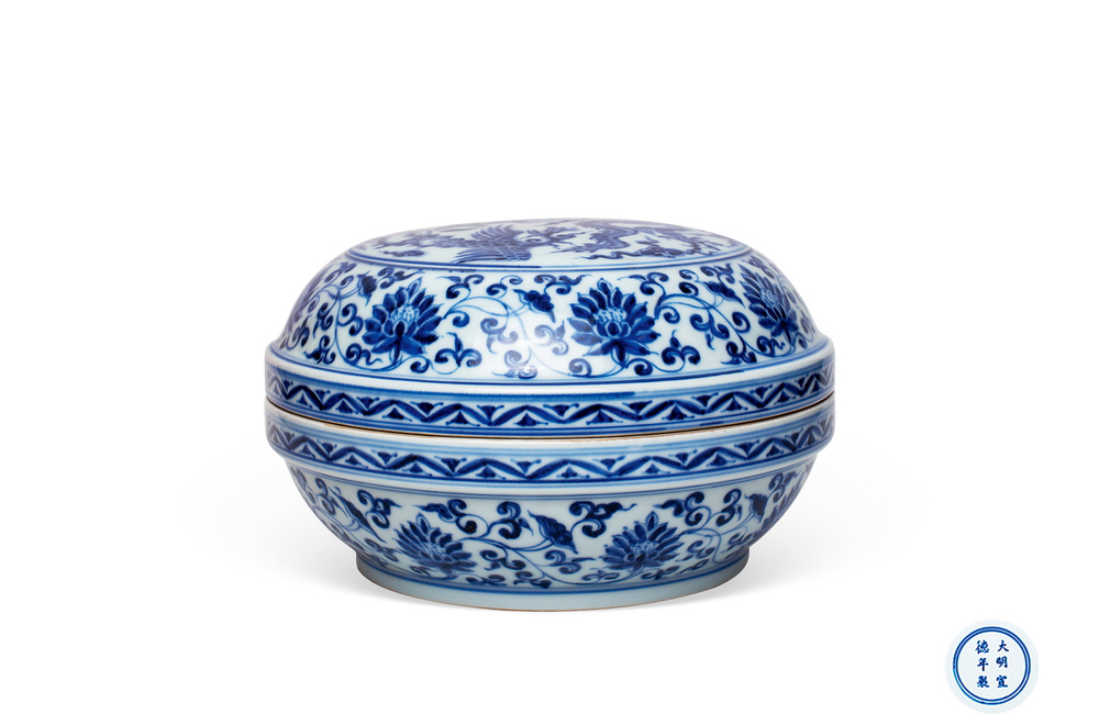 202501_410 青花龙凤缠枝牡丹纹盖盒 明宣德