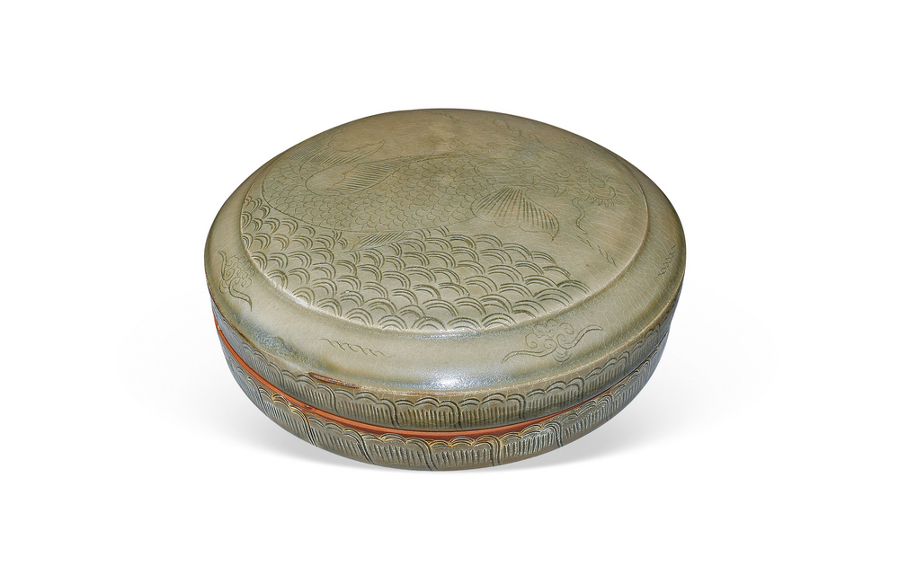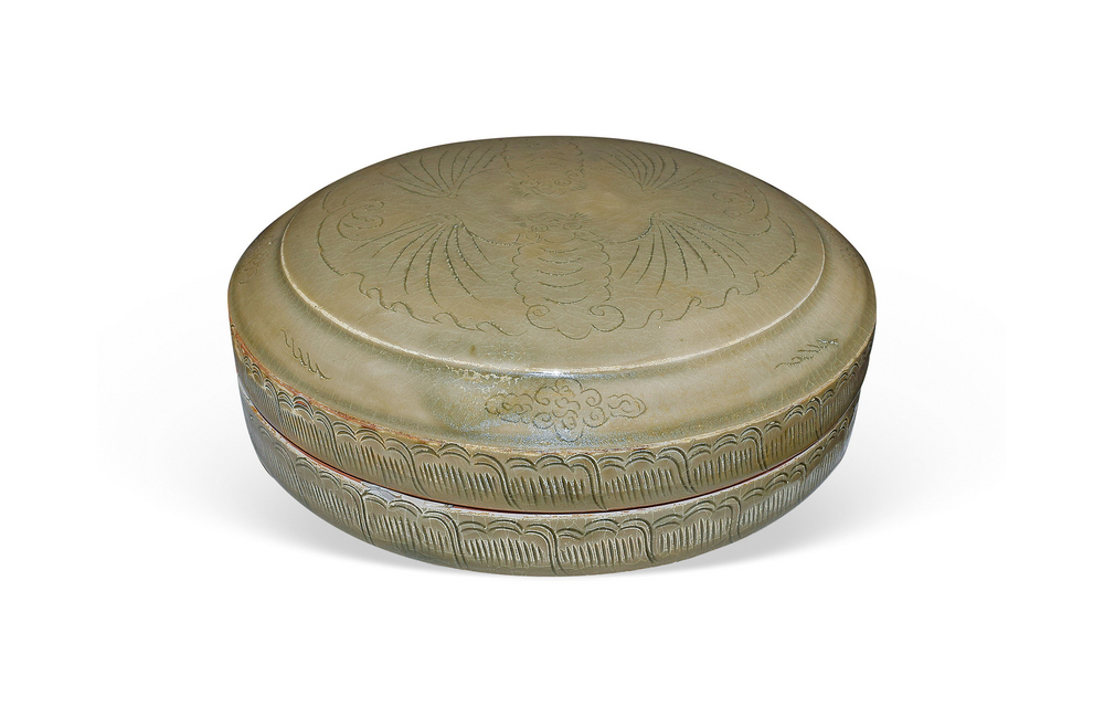 202501_412 越窑秘色蕉叶龙纹香盒 五代