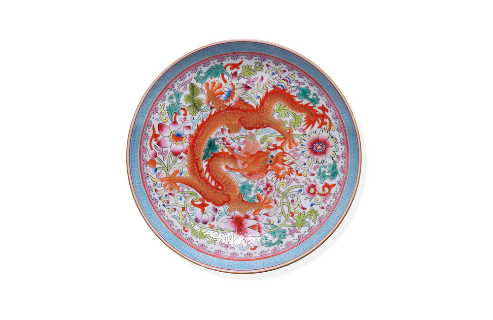 202501_403 嘉庆龙纹描金波浪釉盘 清嘉庆