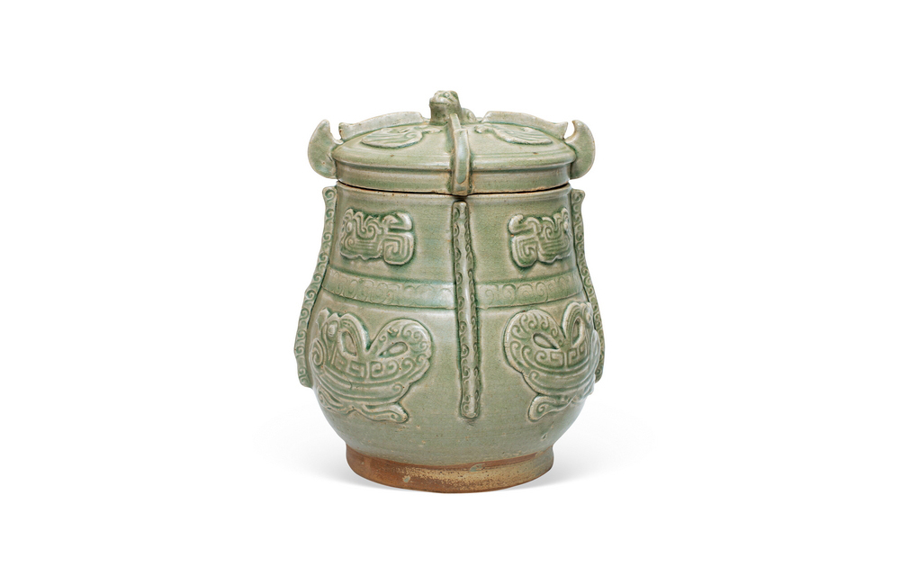 202501_380 越窑青瓷饕餮纹出戟盖樽 北齐 公元559年