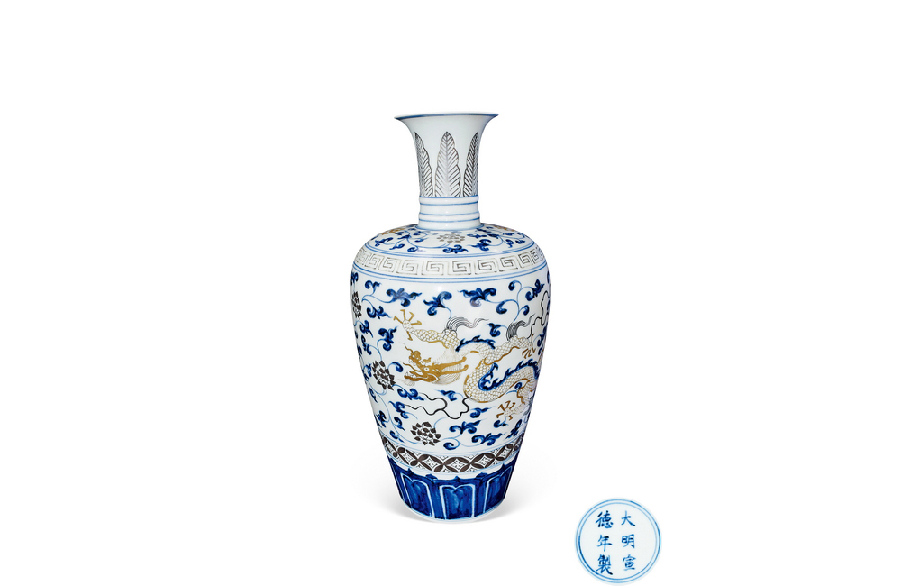 202501_375 青花描金龙纹莱菔瓶 明宣德