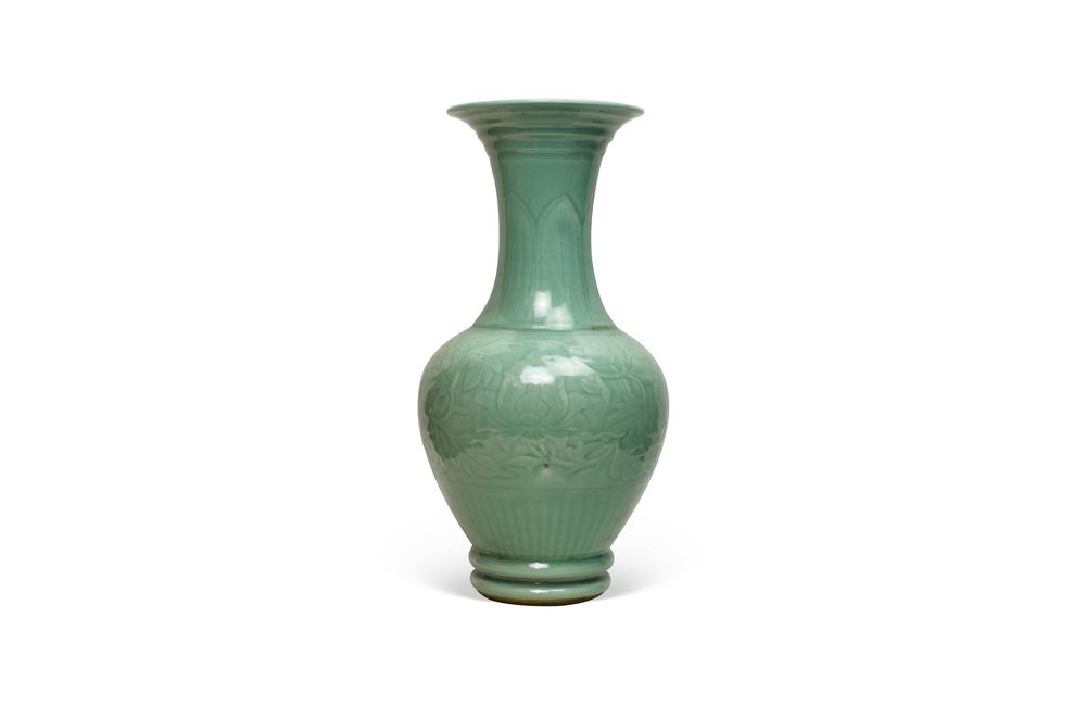 202501_377 龙泉粉青釉暗刻缠枝牡丹纹大赏瓶 南宋