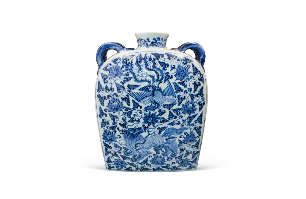 202501_378 青花凤缠枝花卉纹兽耳方瓶 元代