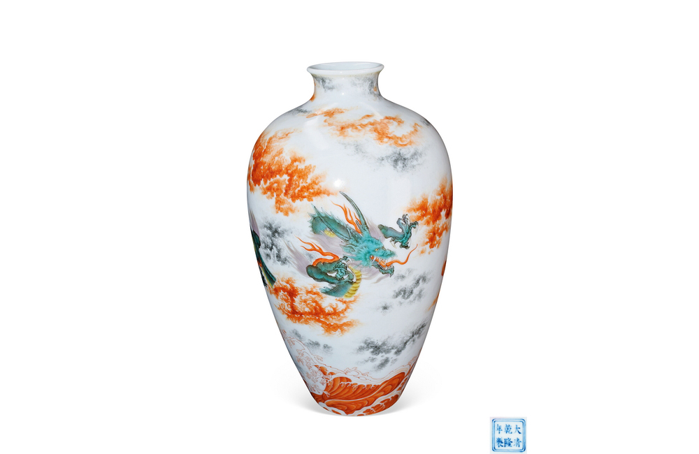 202501_364 粉彩花卉龙纹瓶 清乾隆