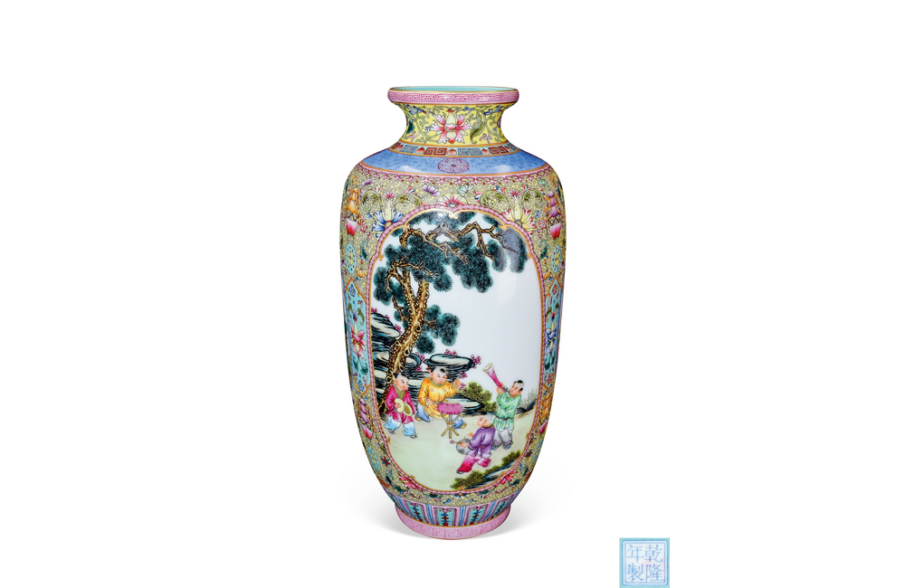 202501_365 粉彩开光婴戏瓶 清乾隆