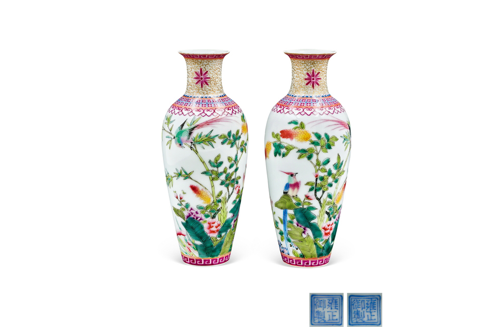 202501_366 珐琅彩花鸟纹观音瓶(一对) 清雍正