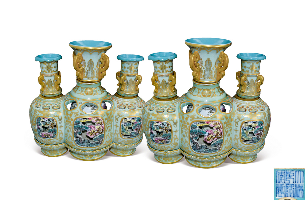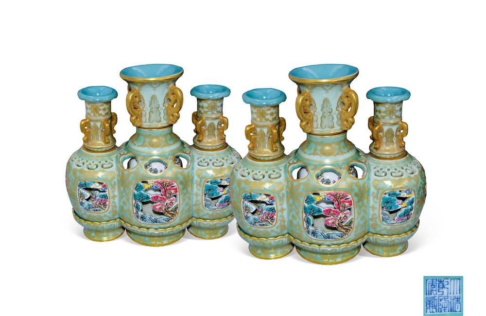 202501_360 粉青釉镂空描金转心瓶(一对) 清乾隆