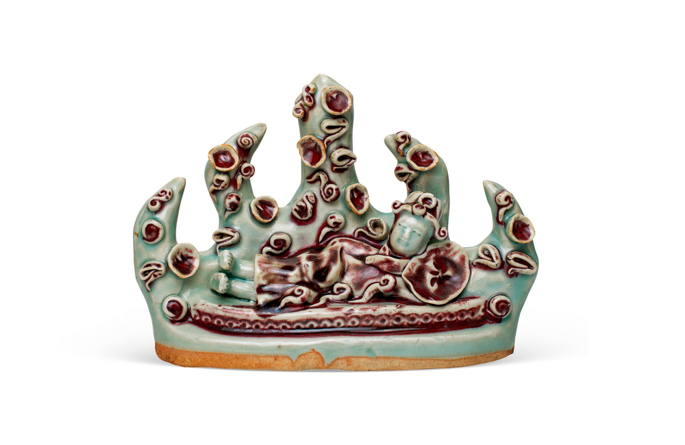 202501_351 釉裹红寿山式雕山人物雁纹笔架 元代