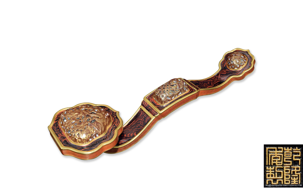 202501_318 仿石纹木釉镂空描金如意摆件 清乾隆