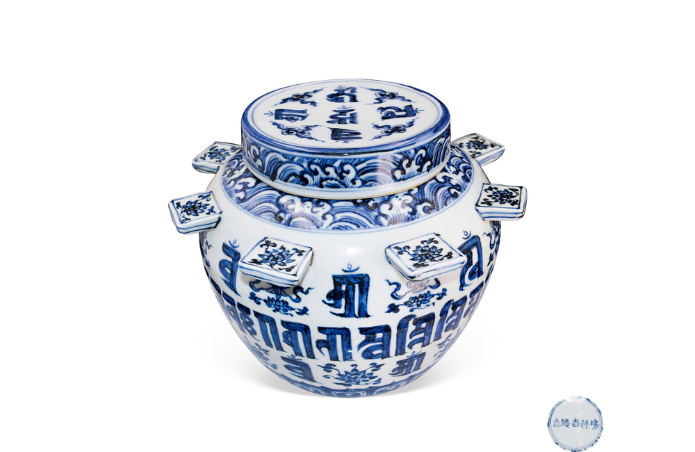 202501_179 青花梵文出戟盖罐 晚清