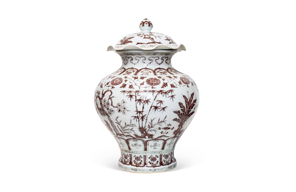 202501_180 釉里红岁寒三友纹荷叶大盖罐 明洪武