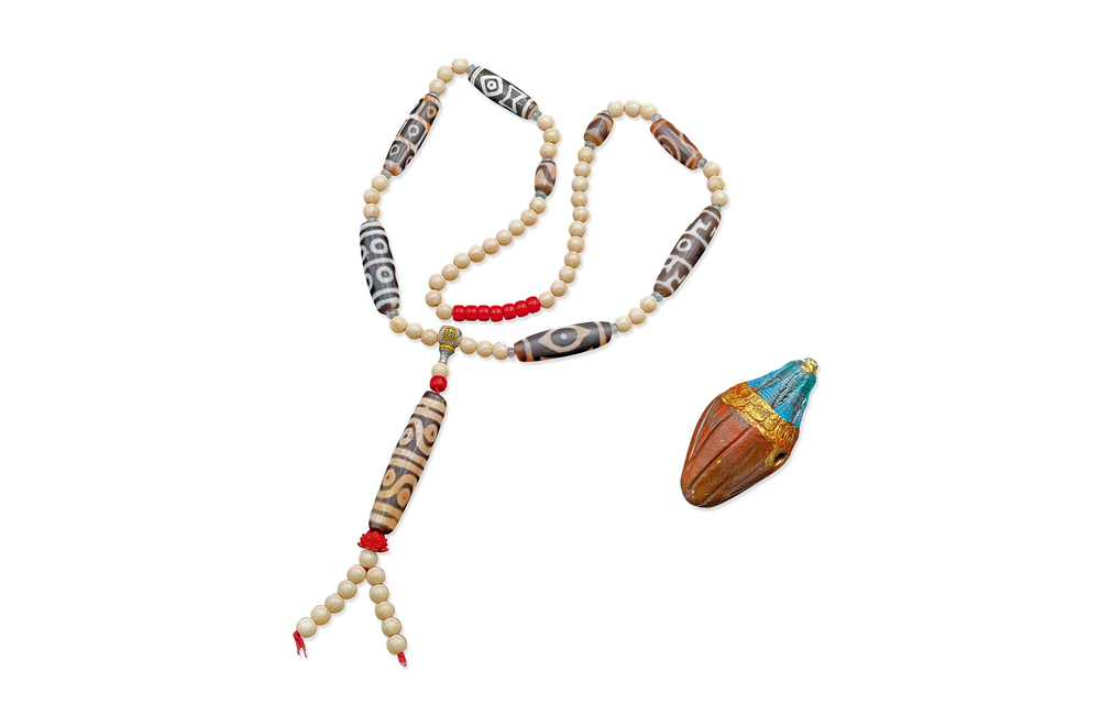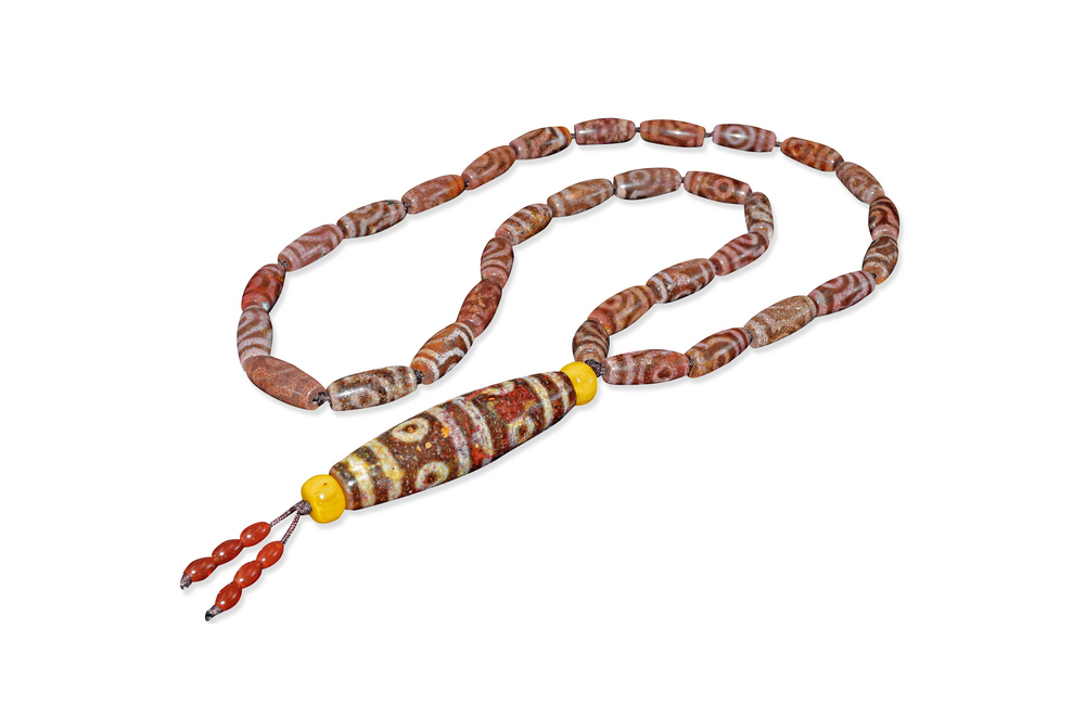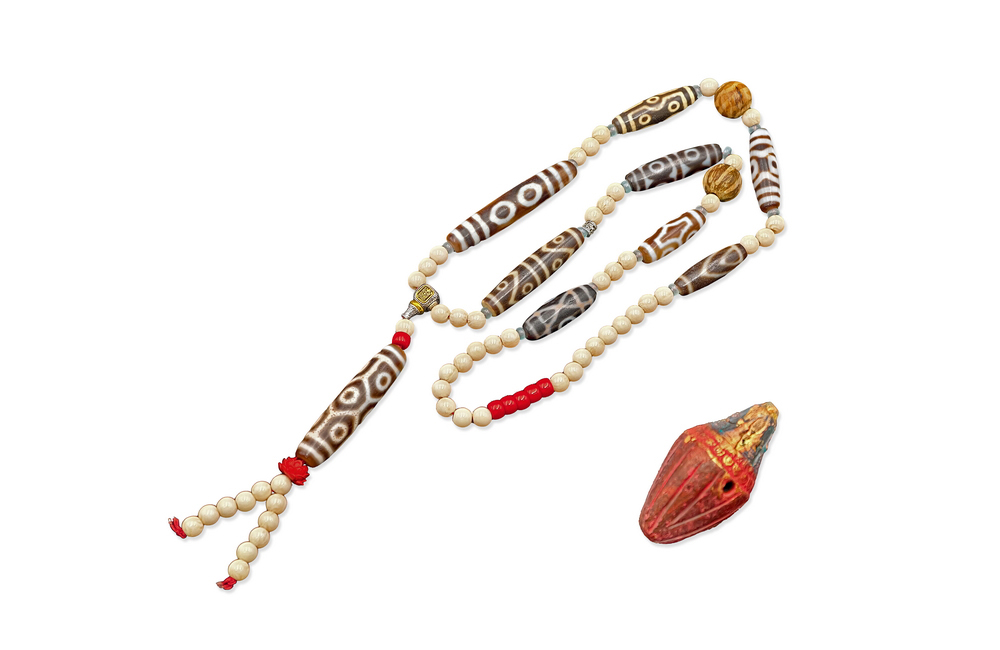 202501_162 天珠 八朵金佛莲天珠等配猛玛牙珠项鍊 明代