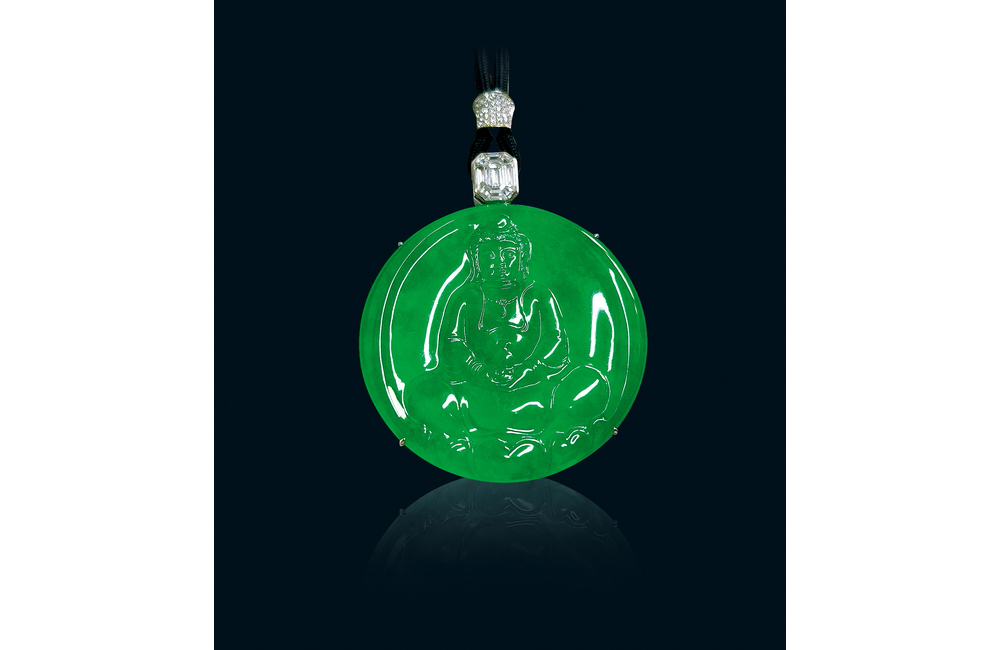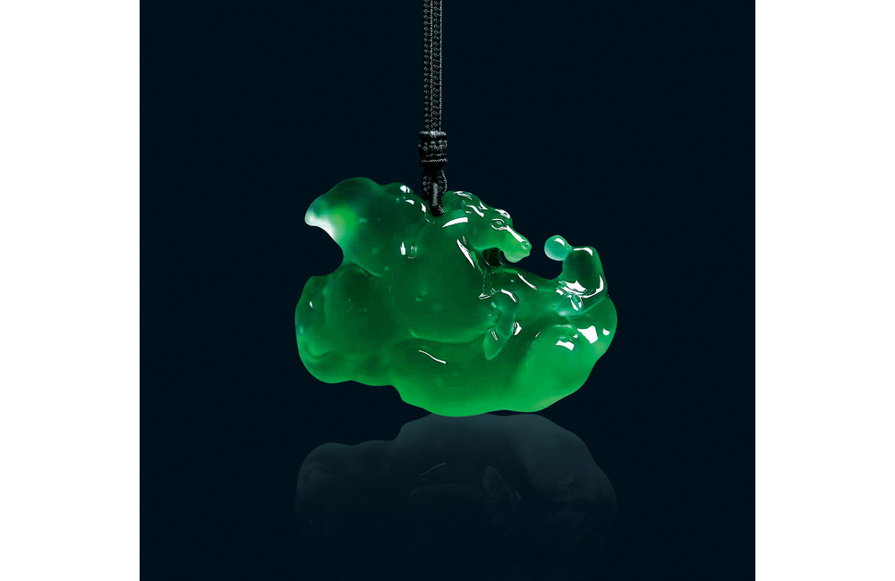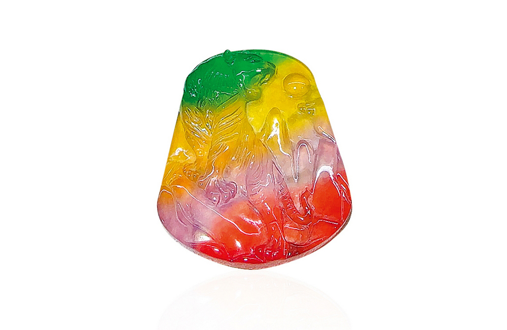 202501_112 翡翠威虎梯形牌 老坑玻璃种绿紫黄红四彩 清代